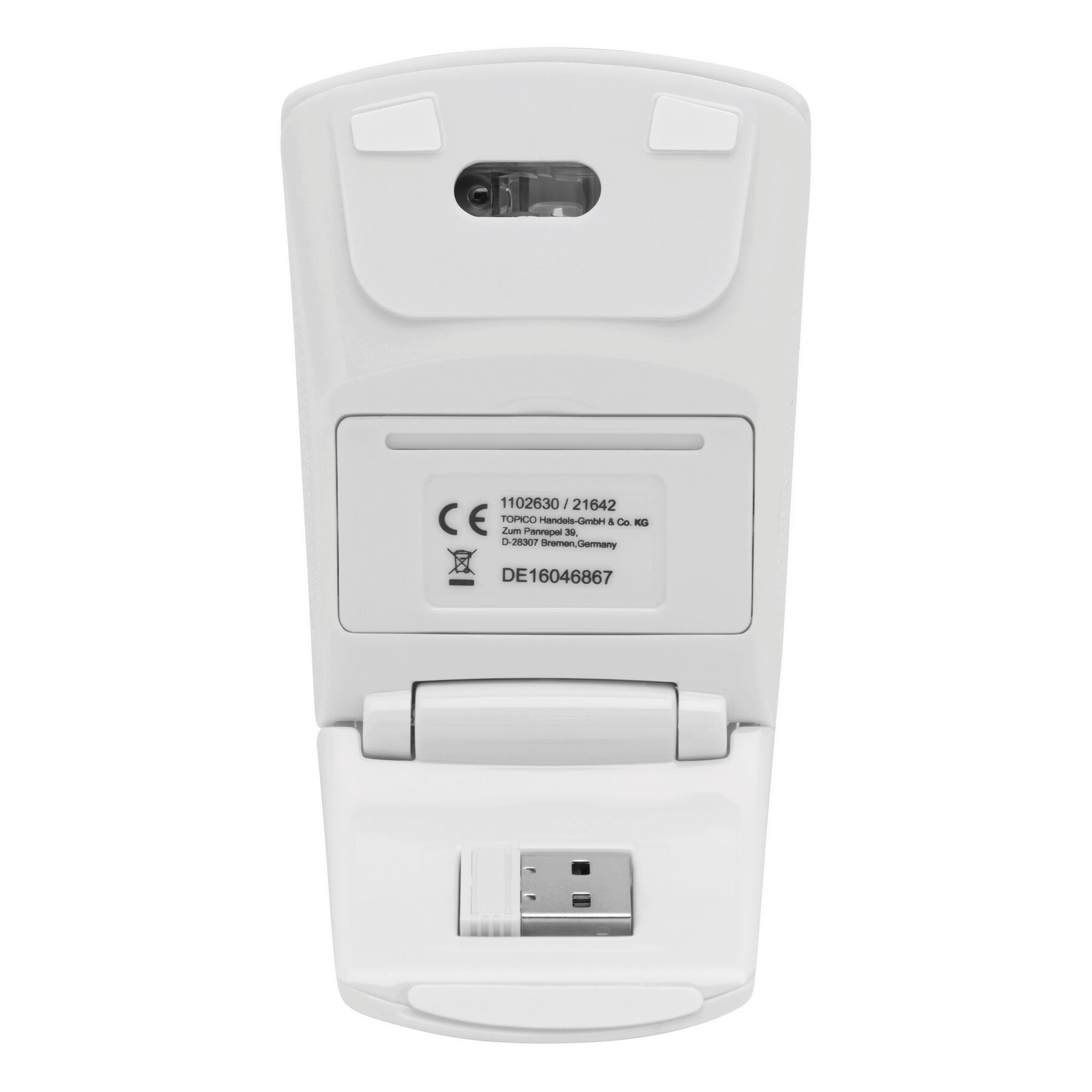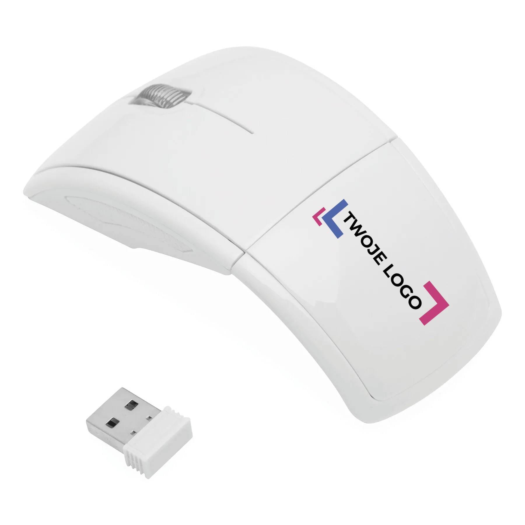 Bezprzewodowa mysz optyczna SINUO z 2 przyciskami i scrollem. Adapter USB podłączony magnesem do dolnej części. Rozdzielczość 800/1600 dpi, zasięg do 10 m. Plug & Play (oprogramowanie nie jest potrzebne).