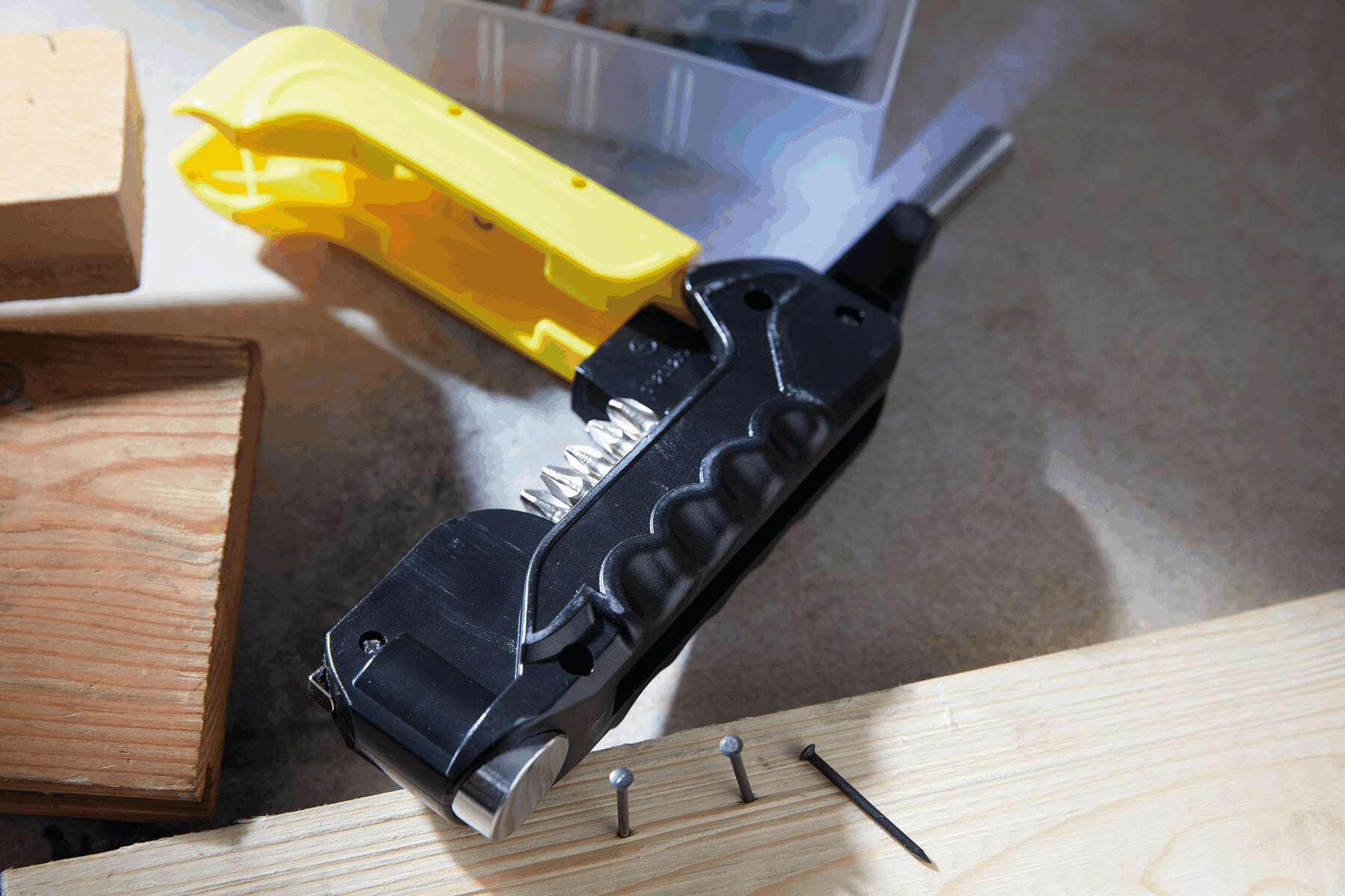 Narzędzie wielofunkcyjne HINGED. 17 możliwych zastosowań, wbudowana poziomica, rozkładany śrubokręt z 12 różnymi końcówkami, światło LED, taśma miernicza 1 m, młotek. W pudełku.
