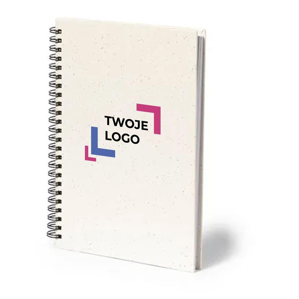 Notatnik A5 (80 pustych kartek), twarda okładka z kartonu z recyklingu, kartki w 100% z recyklingu z mikroperforacją, spiralne bindowanie