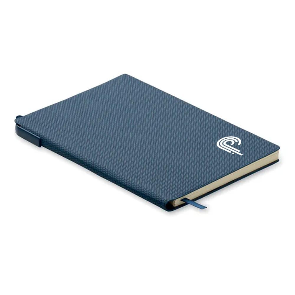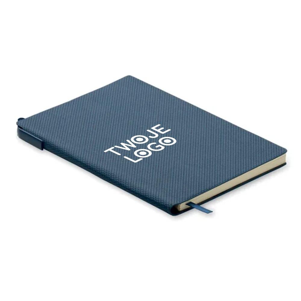 Notatnik A5 ze strukturalną okładką z PU i uchwytem na długopis z ABS wewnątrz grzbietu. Obwoluta. 160 stron w linie na papierze z recyklingu (80 arkuszy).