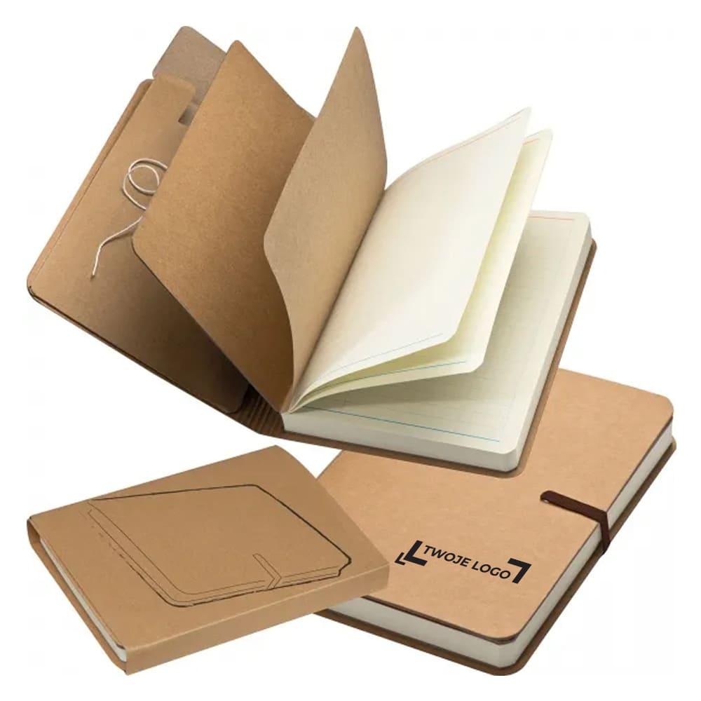 Ekologiczny notes w tekturowej okładce, zamykany na gumkę, posiada 120 stron w linie. Na wewnętrznej stronie okładki znajduje się dodatkowa zamykana kieszonka. Gramatura papieru 70g/m2.