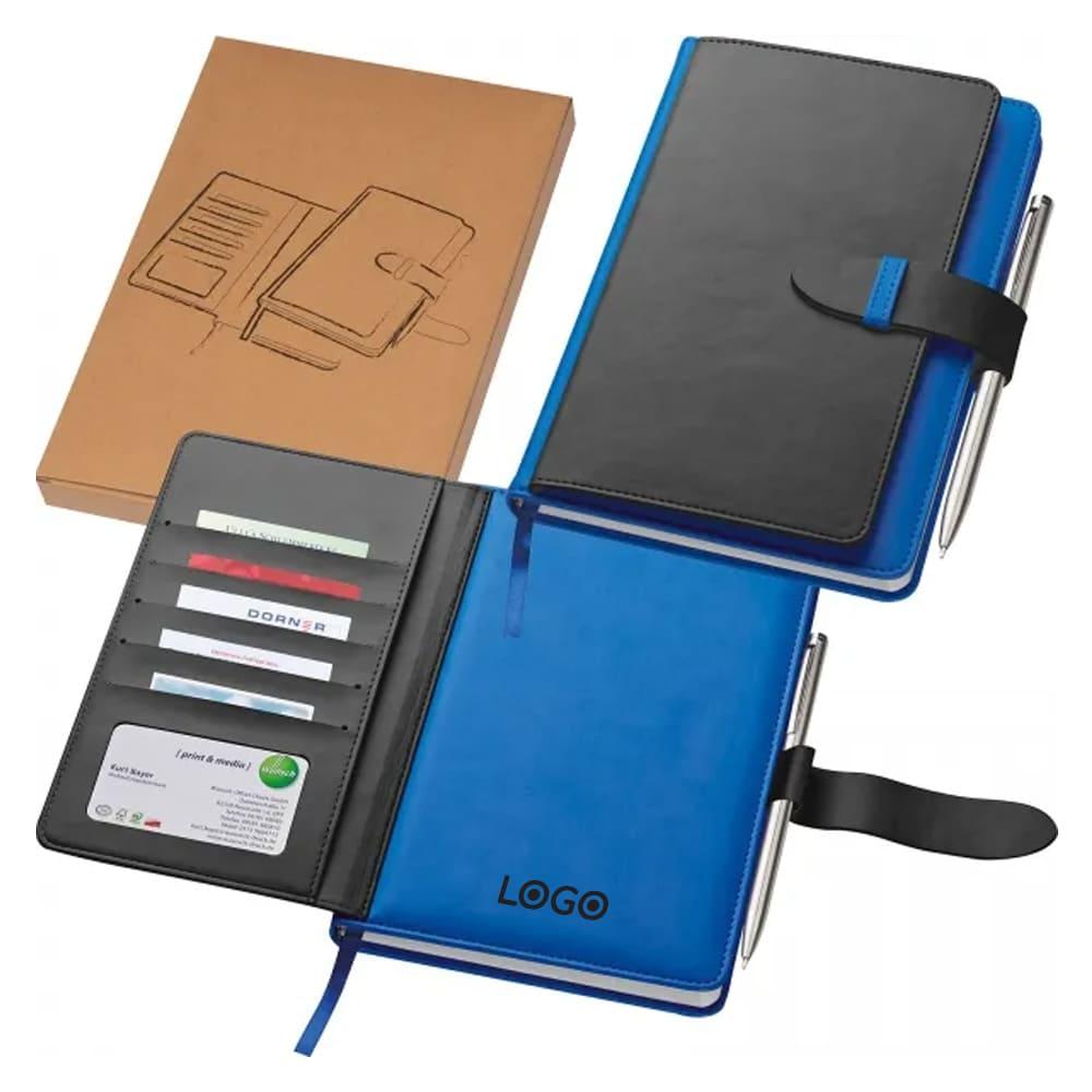Notatnik A5 w linie z wizytownikiem do drukowania logo