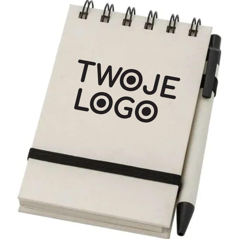 Notatnik A6 z kartonu po mleku, 70 kartek, elastyczna opaska do zamykania, długopis z niebieskim wkładem