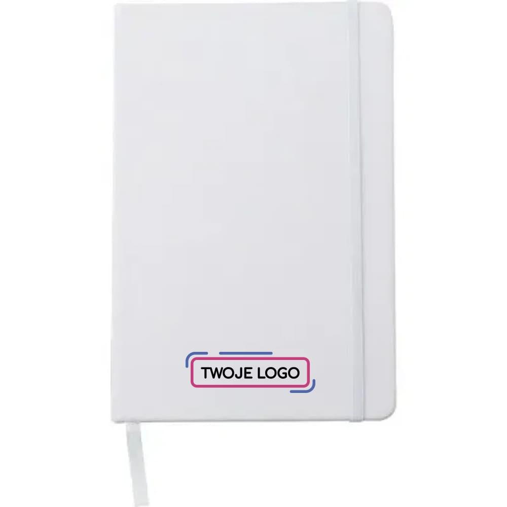 Notatnik RPET (ok. A5, 80 kartek w linie), tasiemka zakładkowa i elastyczna opaska do zamykania