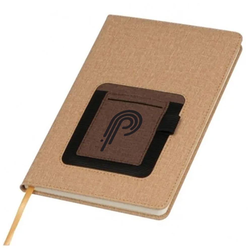 Elegancki notes o formacie A5 ze 160 kartkami w kropki, zakładką oraz pętelką na długopis. Na okładce znajduje się kieszonka na telefon.