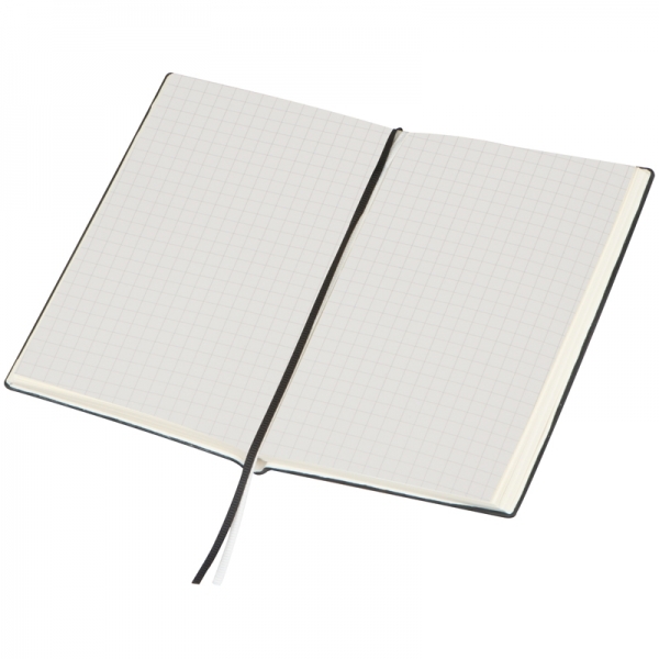 Notes A6 z 160 stronami w kratkę w miękkiej oprawie wykonanej z PU, z podwójną tasiemką pełniącą funkcję zakładki.