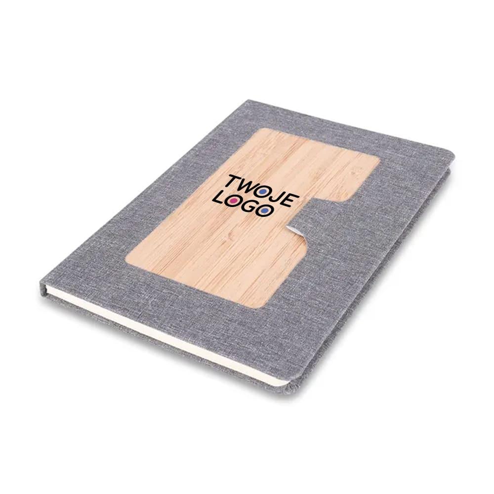 80-kartkowy notes (70 g/m2) w linie w bambusowej oprawie. Notes posiada uchwyt na długopis, elastyczną gumkę oraz tasiemkę do zaznaczania stron.