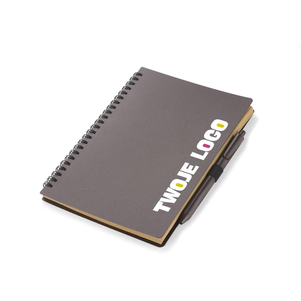 Notes KOPI to idealny pomysł na upominek przyjazny środowisku. Okładka notesu oraz długopis zostały wykonane z tworzywa zmieszanego w 40% z ziarnami kawy, dzięki czemu do produkcji zużyto zdecydowanie mniej plastiku. Notes zawiera 70 kartek w linie wykonanych z papieru z recyklingu w kolorze brązowym. W zestawie długopis automatyczny z wkładem w kolorze niebieskim. Całość zapakowana w ładny kartonik z brązowej tektury idealnie wpisujący się w trend ekologiczny.