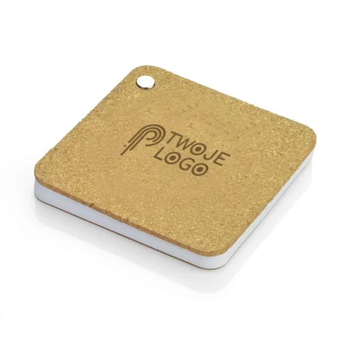 Notes zawierający 60 białych kartek może także posłużyć jako korkowa podstawka pod kubek. Logo możemy nadrukować na powierzchni korkowej i tekturowej.