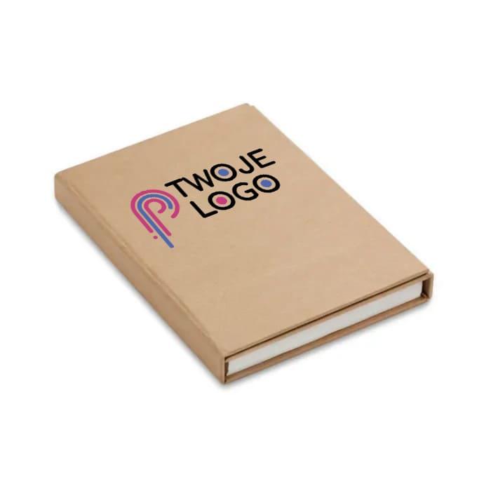 Modny, ekologiczny notes, który chowa w swoim wnętrzu linijkę, karteczki samoprzylepne, miejsce na wizytówki oraz długopis. Logo nadrukujemy na notesie.