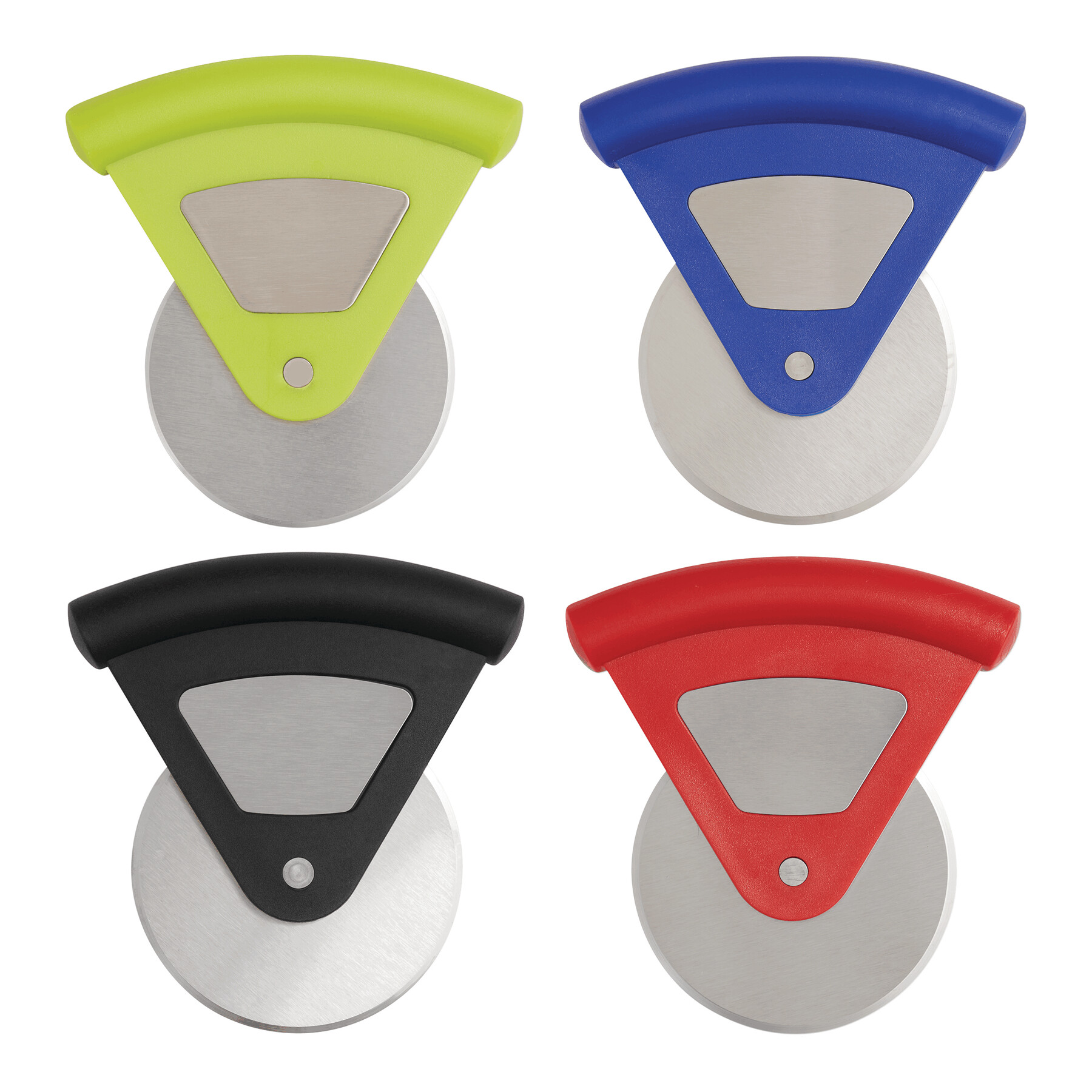 Nóż do pizzy USEFUL z kółkiem krojącym ze stali nierdzewnej, solidną, plastikową rączką z miejscem na reklamę, pakowany w pudełko.