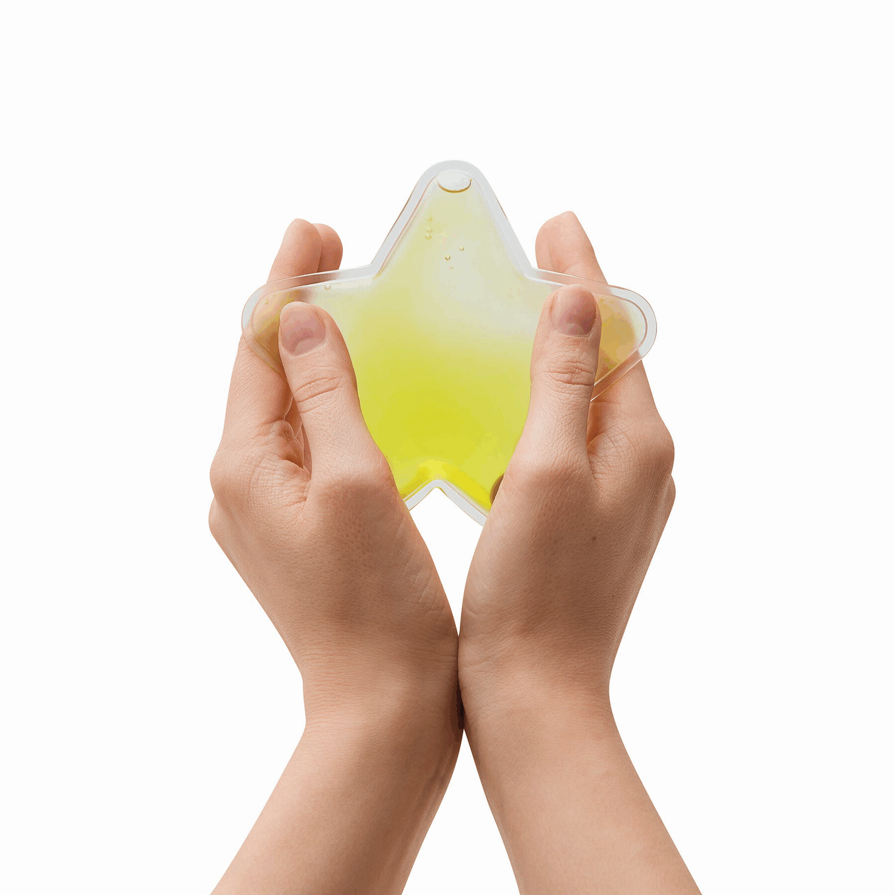 Ogrzewacz dłoni WARM STAR. Poprzez kliknięcie metalowej płytki i ugniatanie, gwiazdka dostarcza ciepło przez ok. 20 minut. Przed następnym użyciem włóż gwiazdkę do bardzo gorącej wody na ok. 5 minut. Uwaga, korzystanie z produktu, w tym jego podgrzewanie, powoduje ścieranie się umieszczonego na nim nadruku.