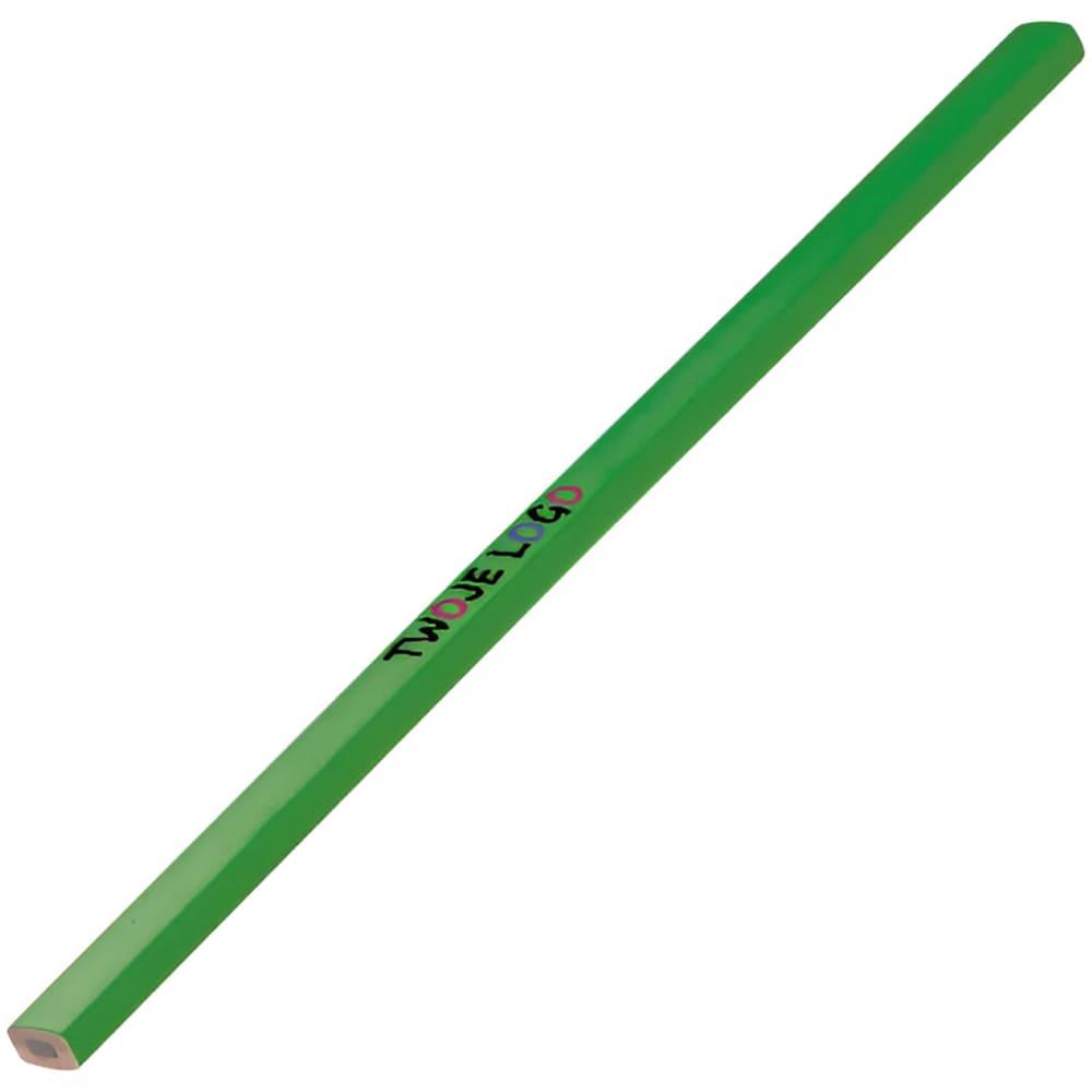 Drewniany, prostokątny ołówek stolarski z grafitowym wkładem HB. Nie jest zatemperowany.