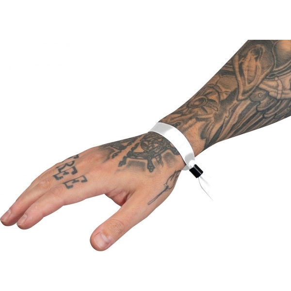 Materiałowa opaska na rękę z zamknięciem zaciskowym.