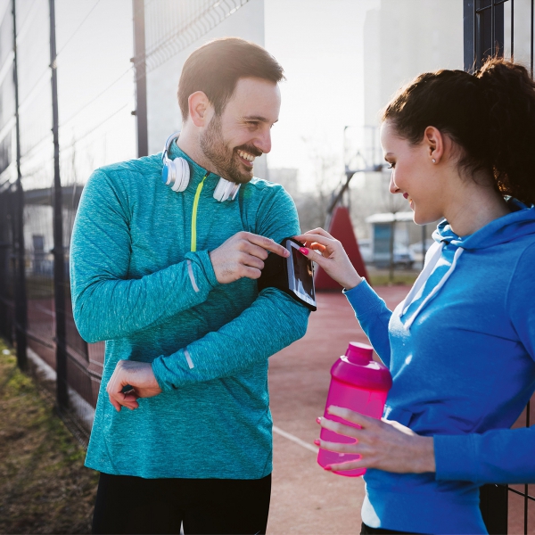 Opaska na telefon zakładana na ramię - idealna np. do biegania. Możliwość regulacji - dwa rozmiary. Posiada kieszonkę na klucze. Wykonana z PU i plastiku.