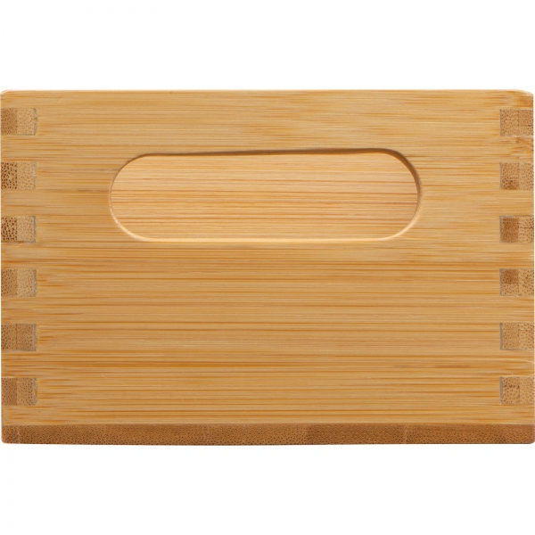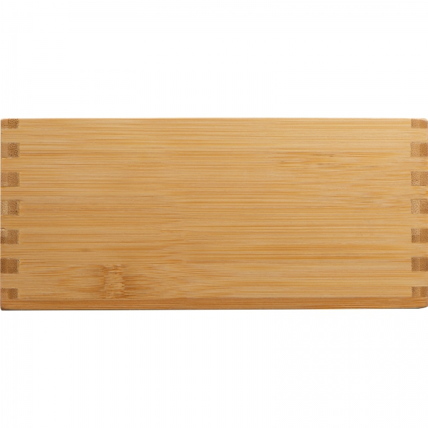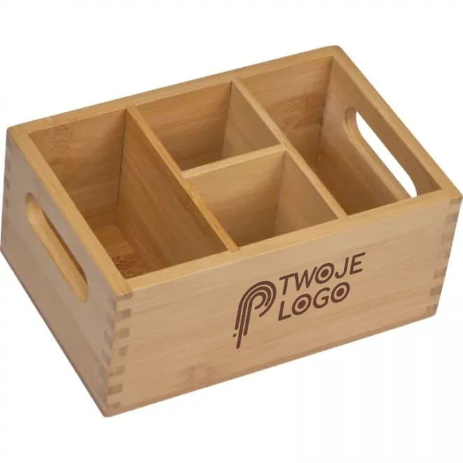 Praktyczny i wygodny organizer kuchenny w wersji dużej. Posiada 4 przegrody, z czego dwie są większe, a dwie mniejsze. Doskonale nadaje się jako połączenie serwetnika z pojemnikiem na sztućce lub przyprawy. Wykonany z bambusa w uniwersalnym stylu, dzięki czemu może być używany jako element dekoracyjny. Dostosowany do wykonania precyzyjnego grawerowania laserowego.