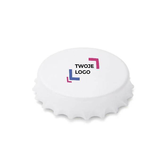 Otwieracz do butelek w kształcie kapsla. Posiada wbudowany magnes, za pomocą którego otwieracz można przymocować do lodówki. Znakowanie logo wykonujemy metodą nadruku.