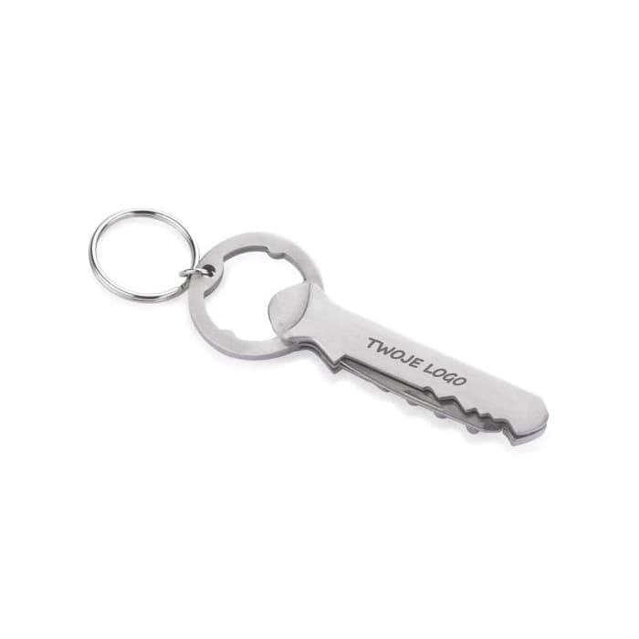 Alco posiada 3 funkcje: brelok, otwieracz do kapsli oraz korkociąg do wina. Wykonany ze stali nierdzewnej. Zapakowany w brązowy kartonik.