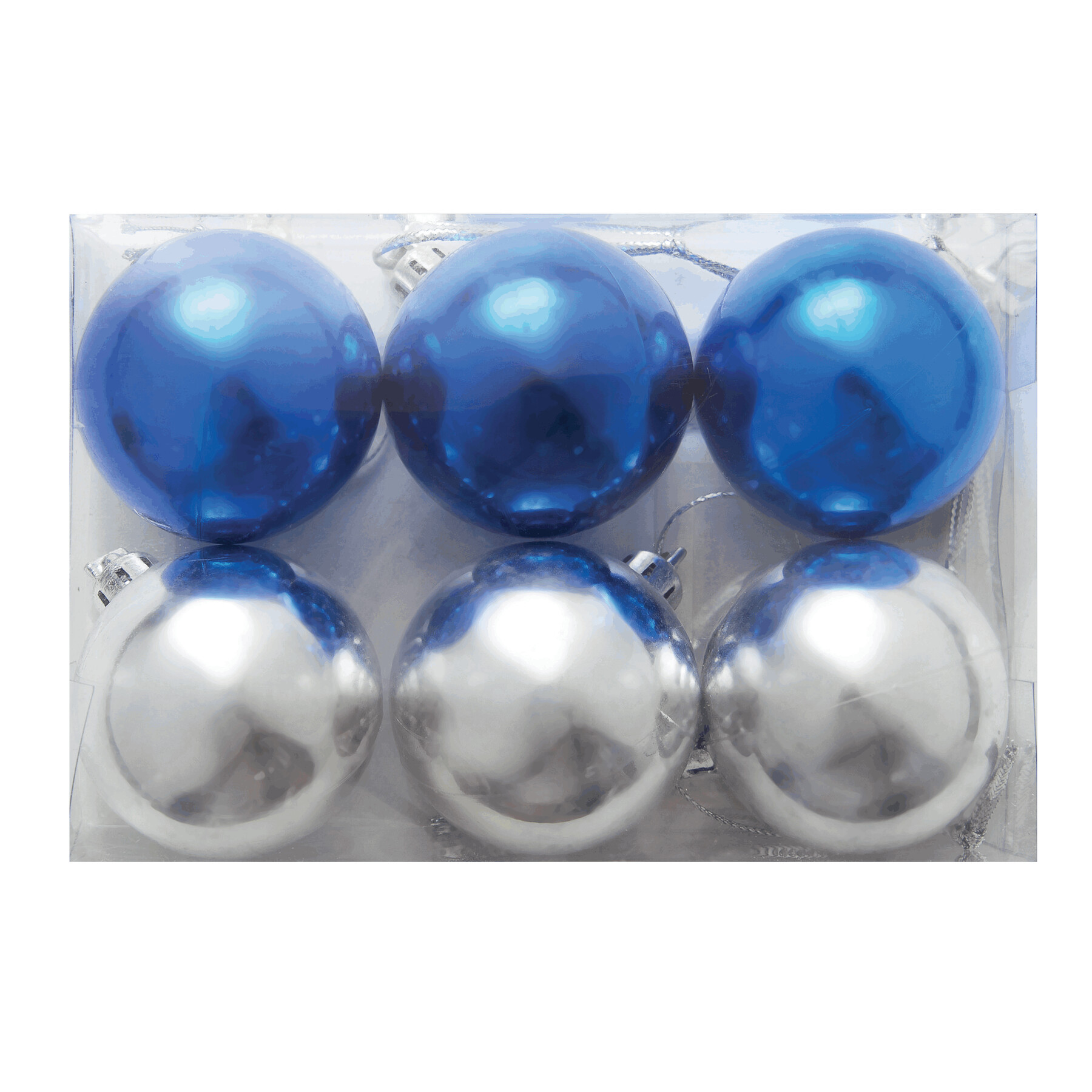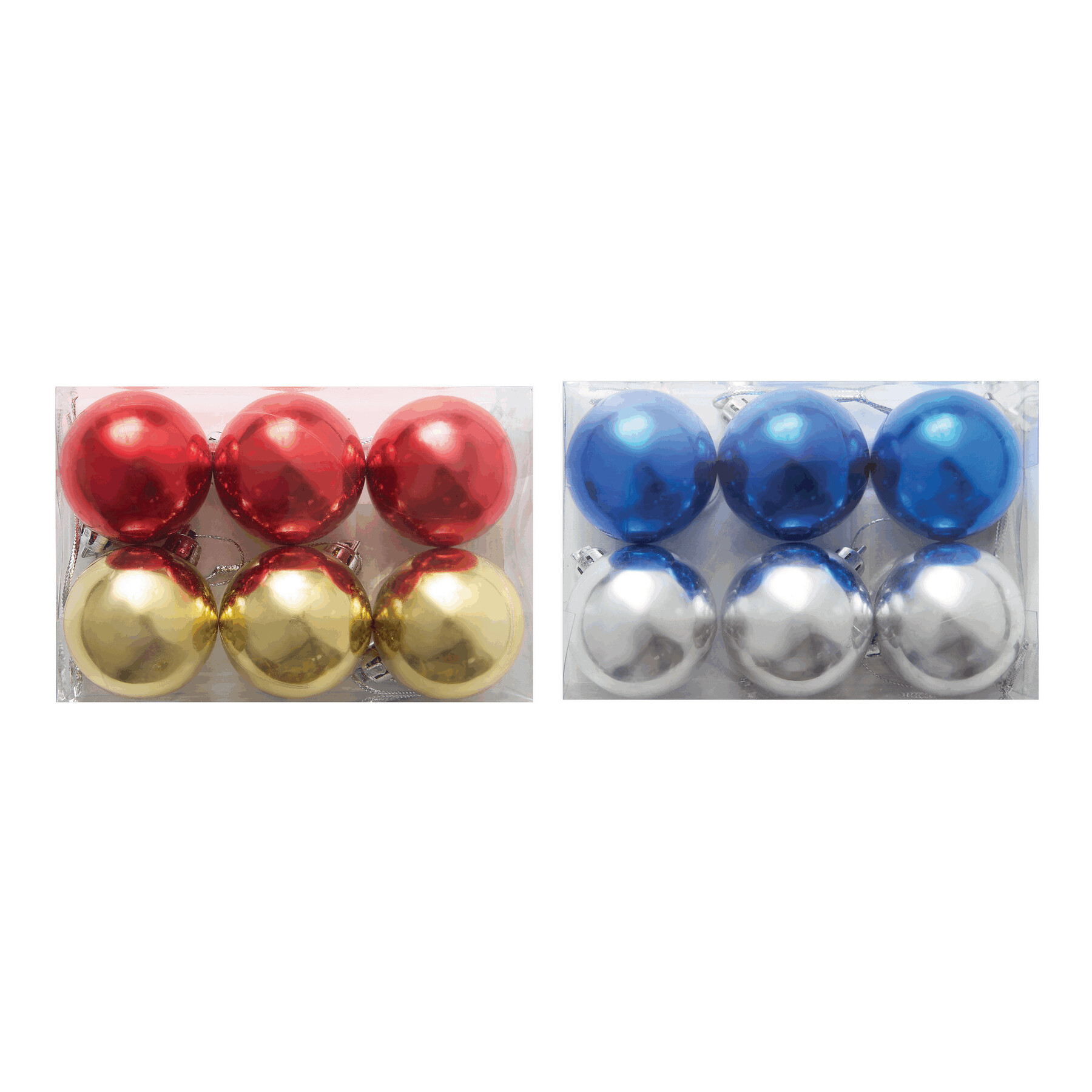 Ozdoby świąteczne XMAS LINE. 6 bombek w dwóch wersjach kolorystycznych ze srebrnym sznurkiem do zawieszania.