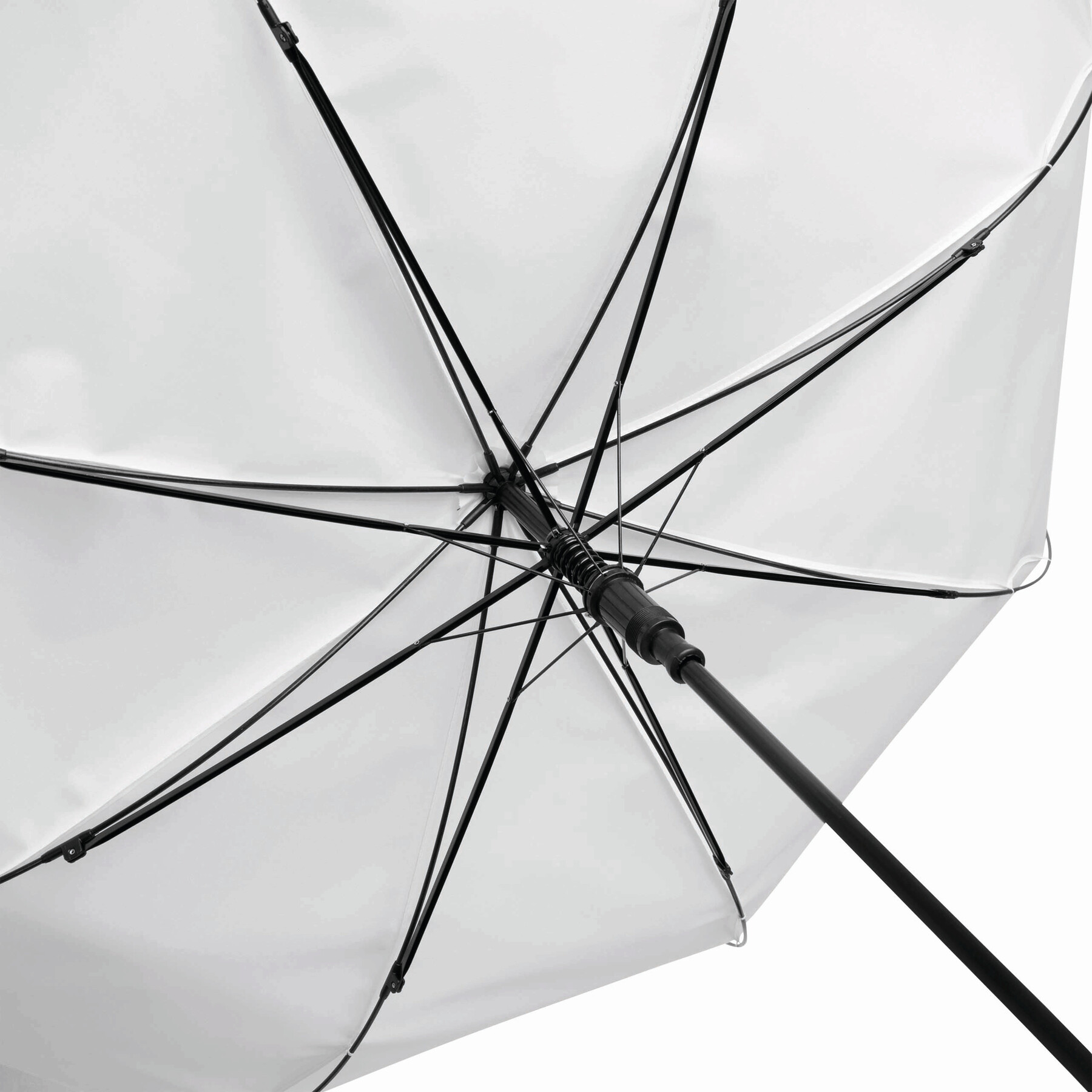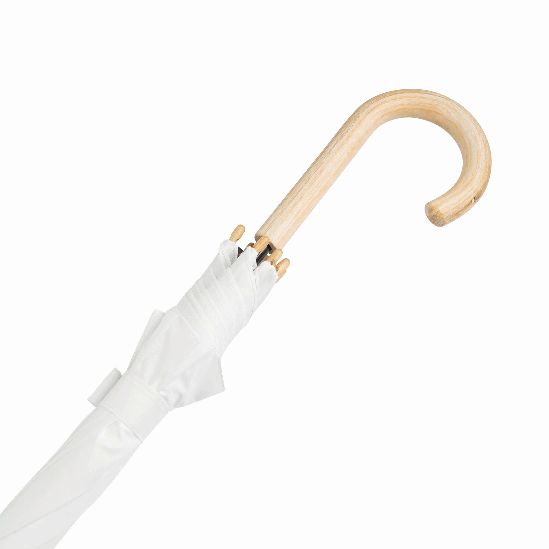 Parasol automatyczny LIPSI z metalową laską. Szyny z włókna szklanego, drewniane kolce i drewniany, zaokrąglony uchwyt. Poszycie z poliestru pongee wykonanego z plastiku pochodzącego z recyklingu / RPET. Zapięcie na rzep.