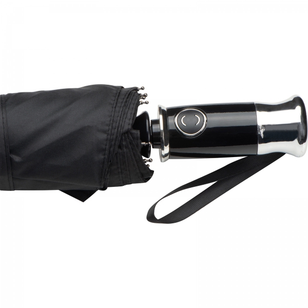 Wysokiej jakości parasol automatyczny, wykonany z poliestru 190T pongee, z czarnym stelażem z włókna szklanego. Zapakowany w dopasowane etui.