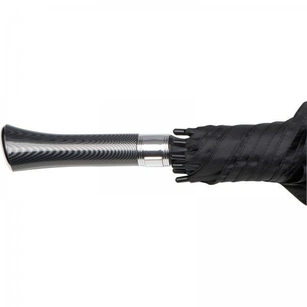 Wysokiej jakości, duży parasol automatyczny, wykonany z poliestru 190T pongee, z czarnym stelażem z włókna szklanego. Zapakowany w dopasowane etui.