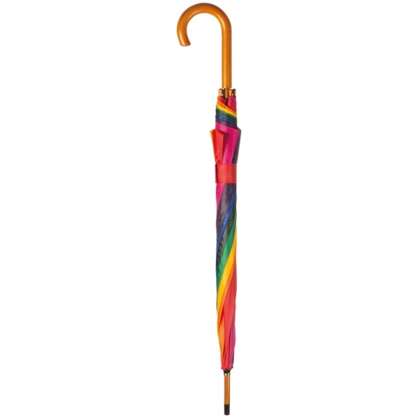 Parasol automatyczny SARAJEVO wykonany z poliestru, posiada drewnianą rączkę oraz metalowy korpus.