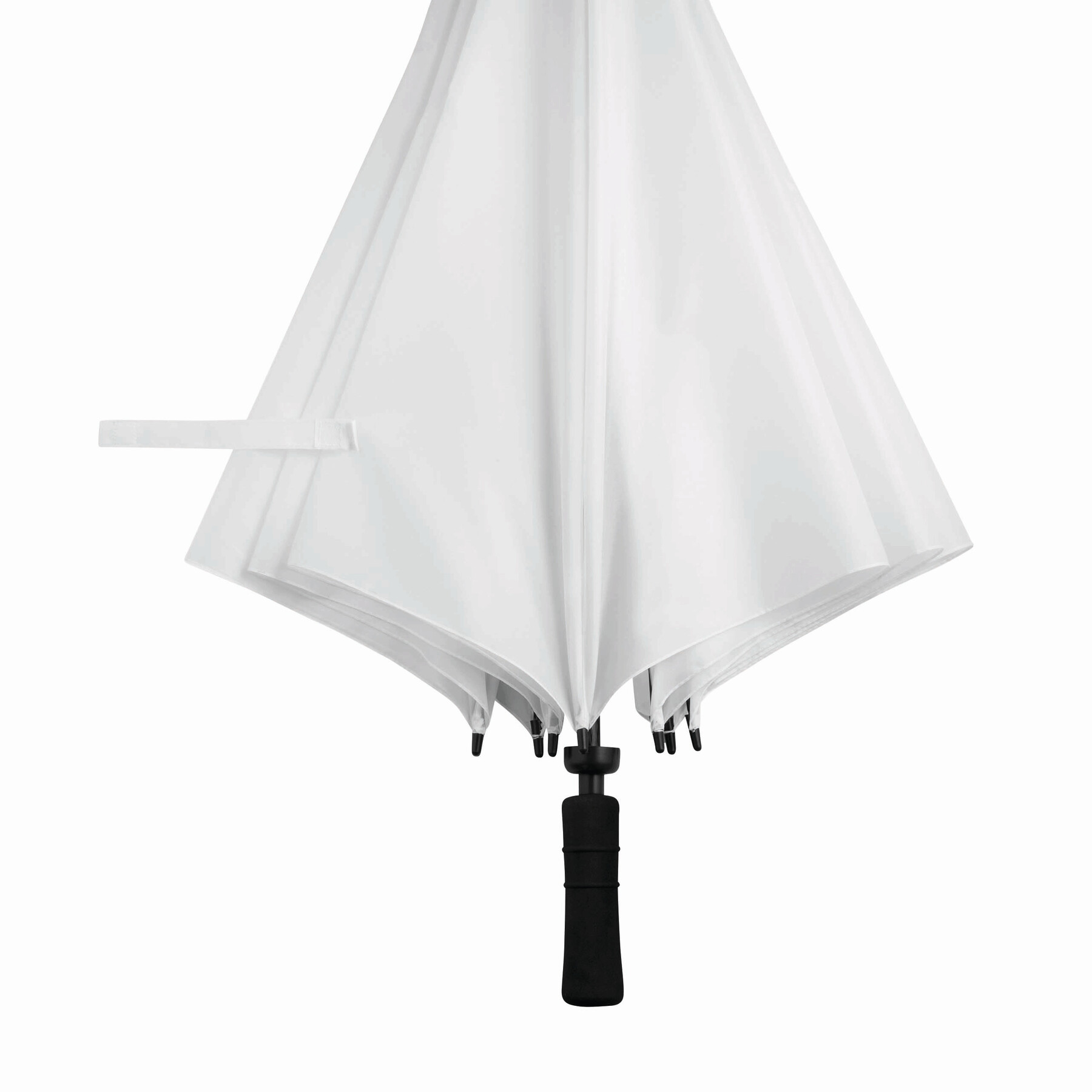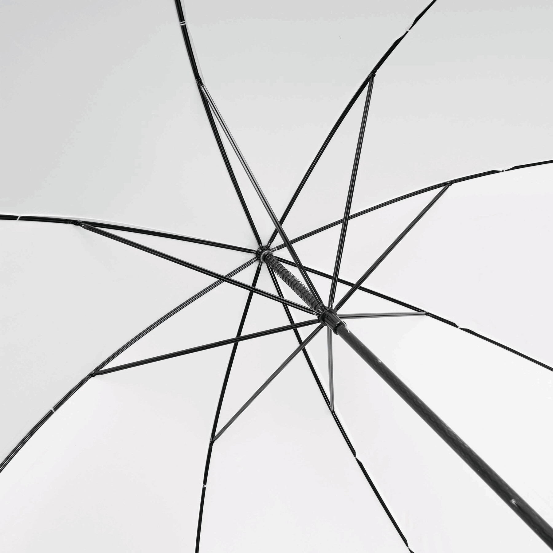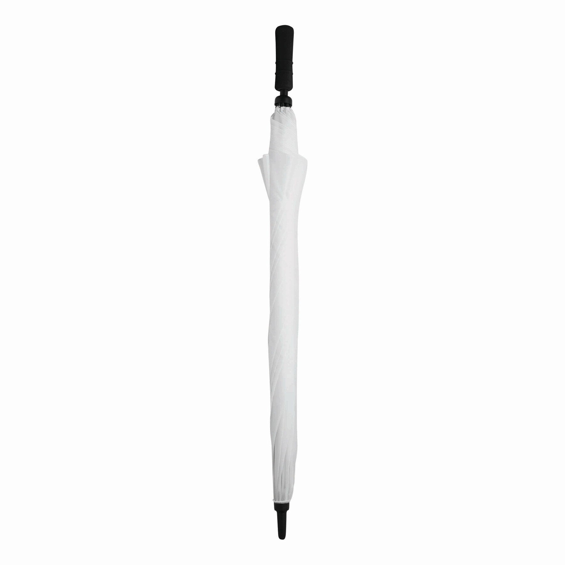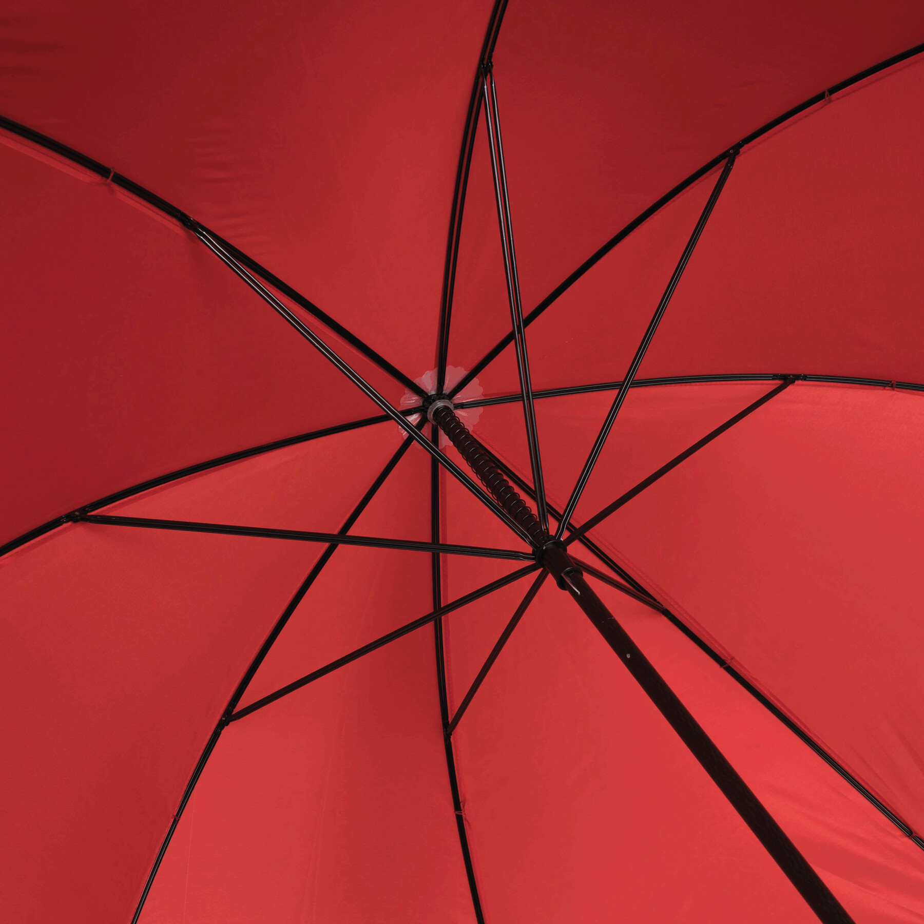 Parasol bez automatu TORNADO. Poszycie z poliestru. Czarne, podwójne, metalowe szyny, laska z włókna szklanego, czarny uchwyt z EVA. Odporny na wiatr, specjalna sprężynowa konstrukcja.