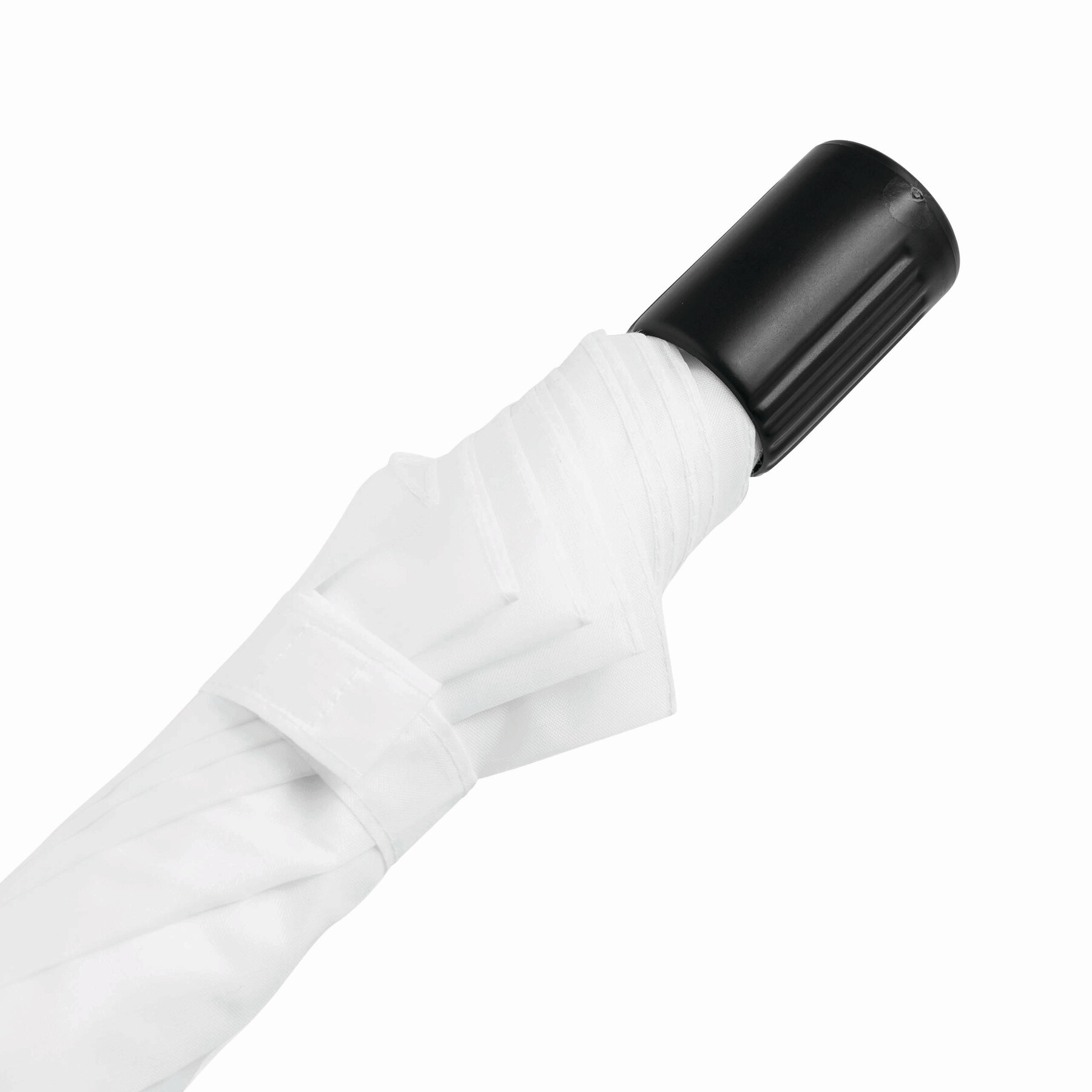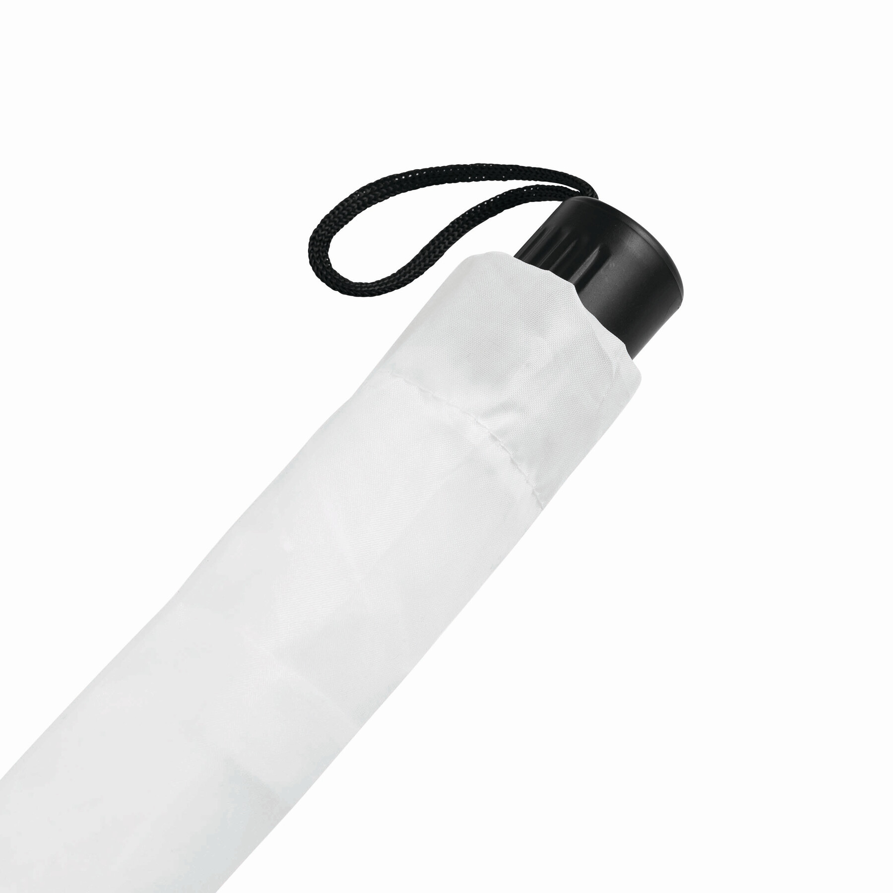 Parasol składany bez automatu REGULAR. Poszycie z poliestru, 2 x składana metalowa laska, metalowe szyny, czarny, plastikowy uchwyt ze sznureczkiem.