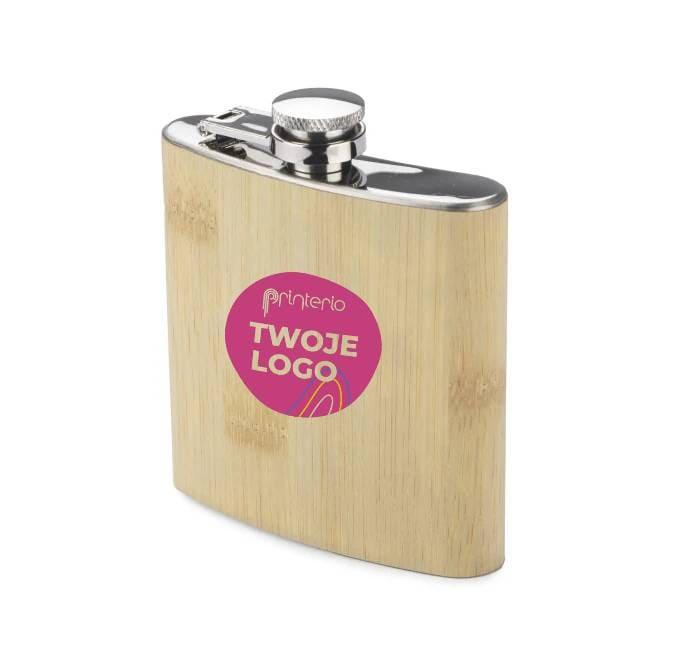 Piersiówka ze stali nierdzewnej o pojemności 200 ml z bezpiecznym zamknięciem. Wykończona jest bardzo cienką warstwą naturalnego bambusa.