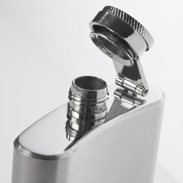 Piersiówka FRESNO wykonana ze stali nierdzewnej, o pojemności 104 ml. Posiada bezpieczne zamknięcie.