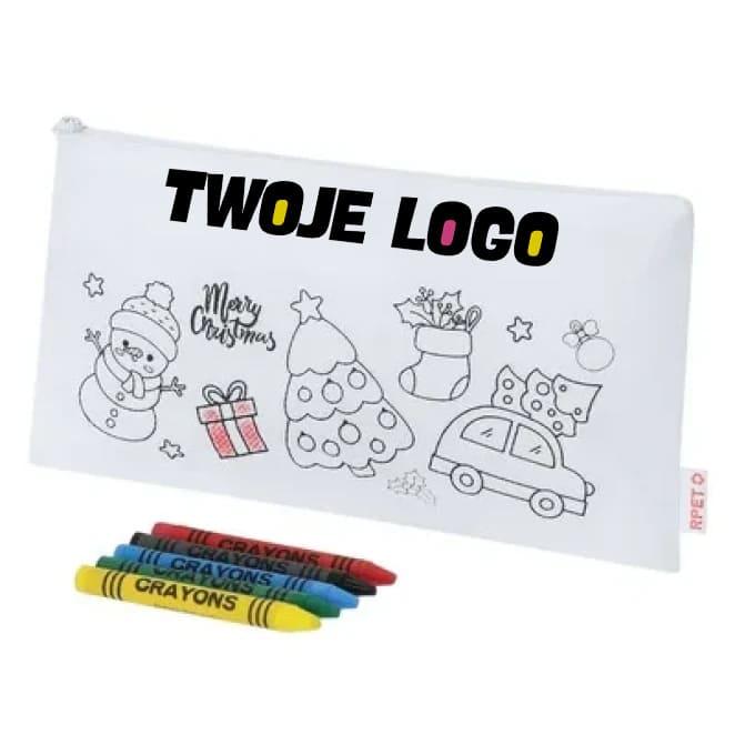 Piórnik do kolorowania, świąteczny wzór, kredki do drukowania logo