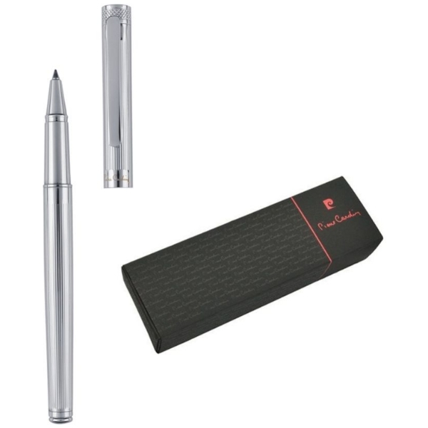 Wysokiej jakości metalowe pióro kulkowe z chromowanymi elementami pochodzące z kolekcji RENEE. Posiada niebieski wkład z końcówką 0,6 mm, zapewniającą płynne pisanie oraz dodatkowy wkład z czarnym atramentem. Pióro zapakowane w eleganckie pudełko prezentowe z certyfikatem autentyczności Pierre Cardin.