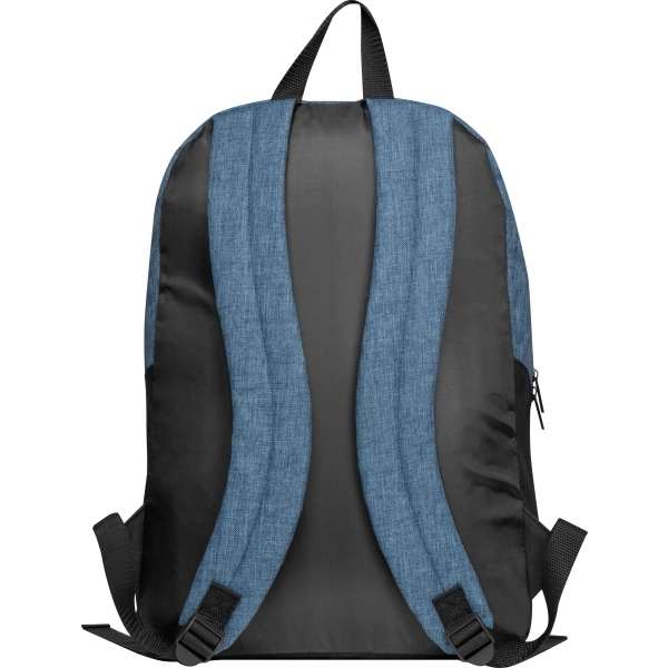 Plecak wykonany z poliestru 600D, z dużą przegrodą główną, mniejszą kieszonką z przodu. Plecak posiada watowane plecy i regulowane szelki.