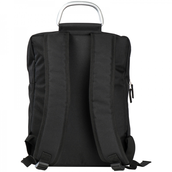 Plecak na laptopa z dużą wewnętrzną kieszenią oraz dwoma dodatkowymi kieszeniami na zamek. Plecak wykonany z poliestru 600D. Dostępny w czarnym kolorze.