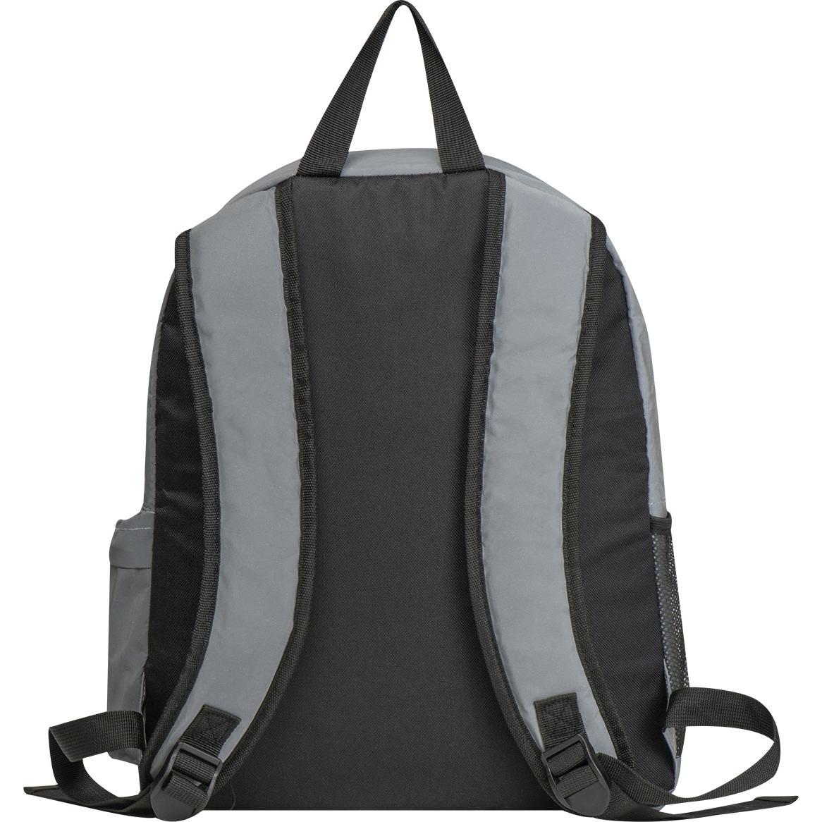 Plecak wykonany w całości z wysoce odblaskowego materiału 190T i poliestru 600D. Posiada specjalną kieszeń na laptopa, siateczkową kieszeń boczną oraz małą kieszonkę zamykaną na zamek.