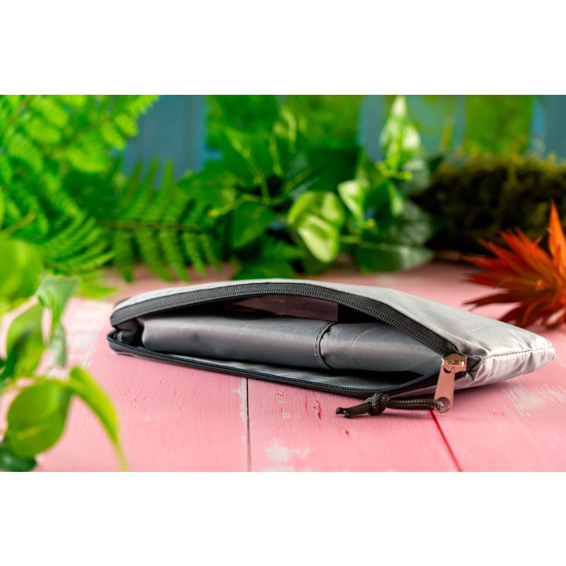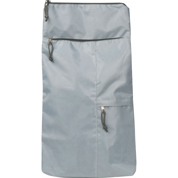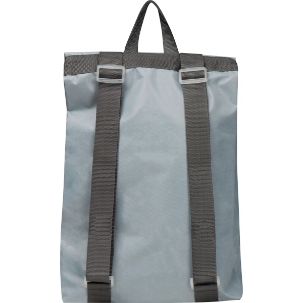 Lekki, składany plecak, wykonany z materiału RPET, posiada dużą komorę zamykaną na zamek, małą frontową kieszeń i regulowane szelki.