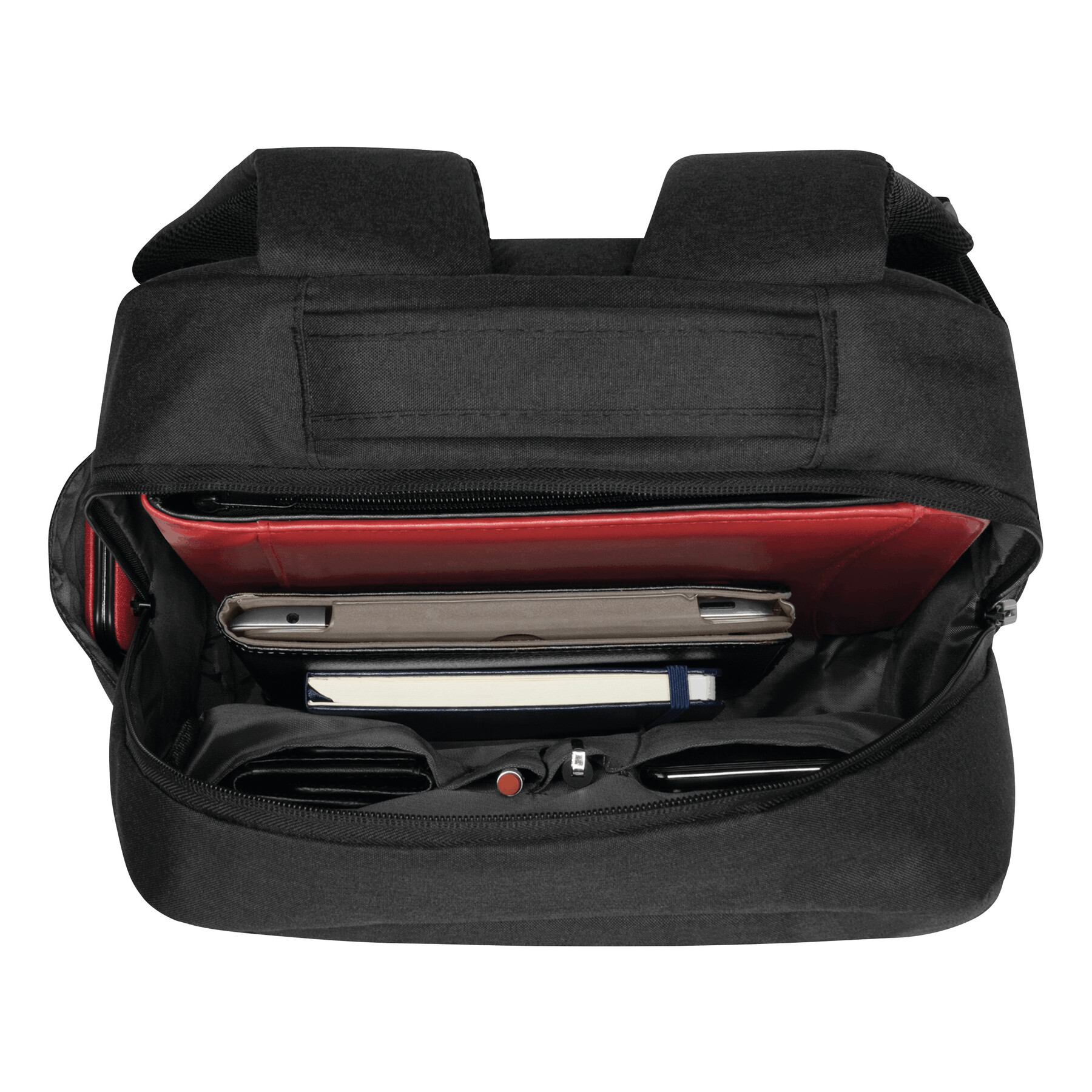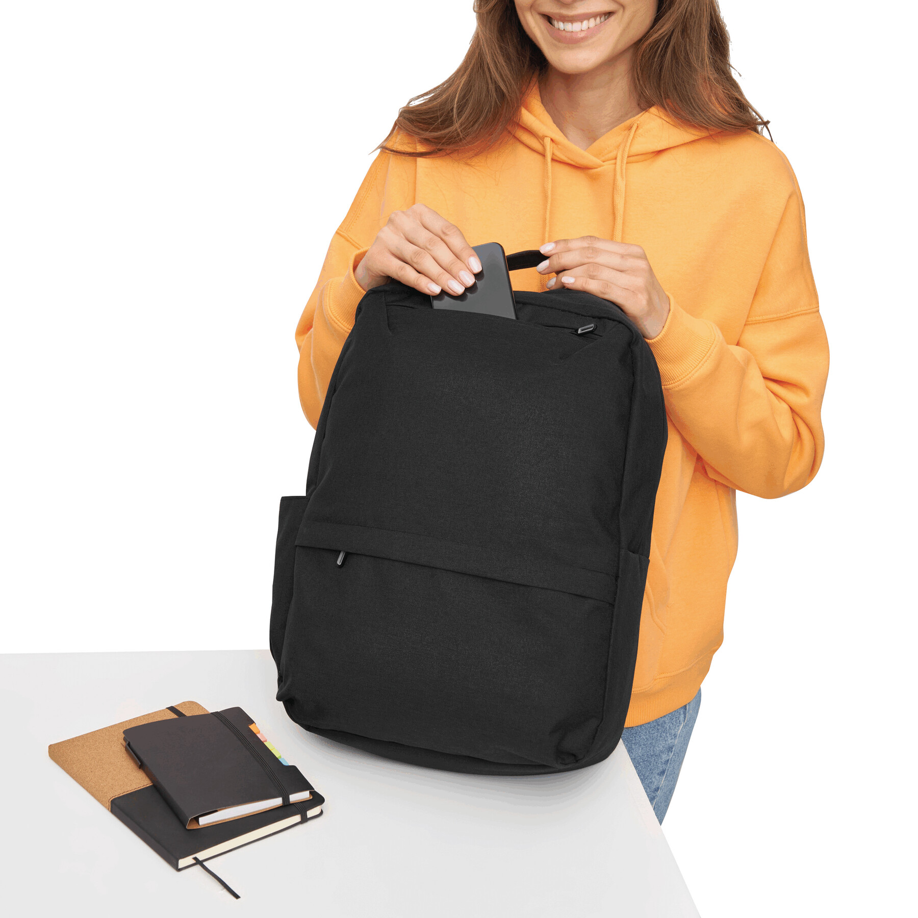 Plecak STOCKHOLM z 2 przednimi kieszeniami z zamkiem błyskawicznym, główną kieszenią z zamkiem błyskawicznym, wyściełaną kieszenią wewnętrzną na laptopa lub tablet, organizerem z 4 kieszeniami, 1 wsuwaną kieszenią z boku, wyściełanym uchwytem, wyściełanymi szelkami ergonomicznymi, wyściełanymi plecami i paskiem umieszczonym z tyłu.