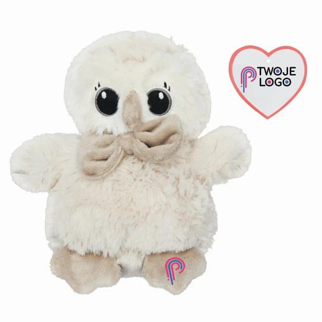 Pluszowa sowa HELGA z bardzo miękkim futerkiem. Uszy, dziób i nogi z materiału. Z dopasowaną kokardą zawiązaną na szyi. Serce do nadruku.