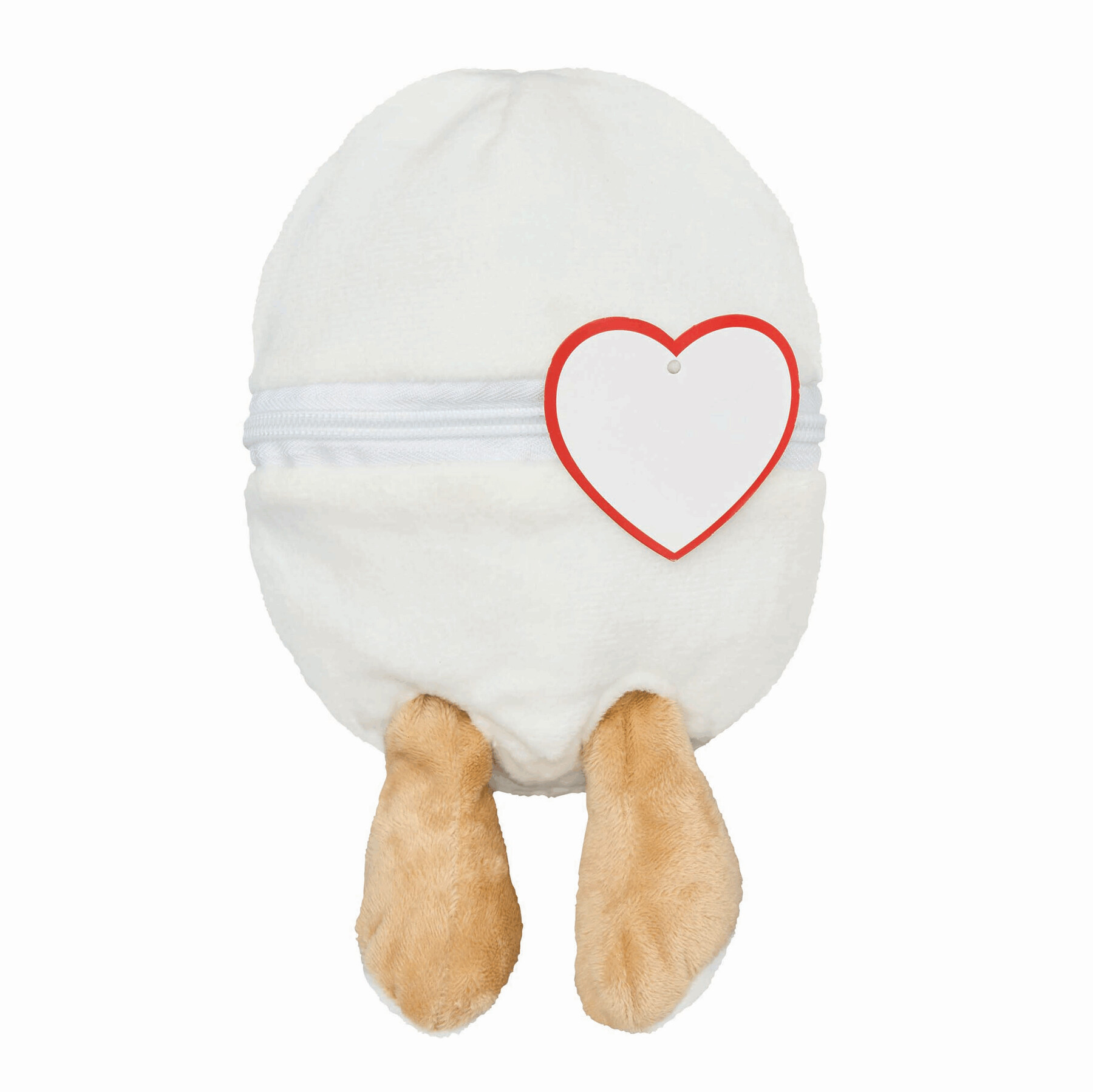 Pluszowy królik LUKAS z miękkim futerkiem. Umieszczony wewnątrz pluszowego jajka z zamkiem błyskawicznym. Z sercem do nadruku.