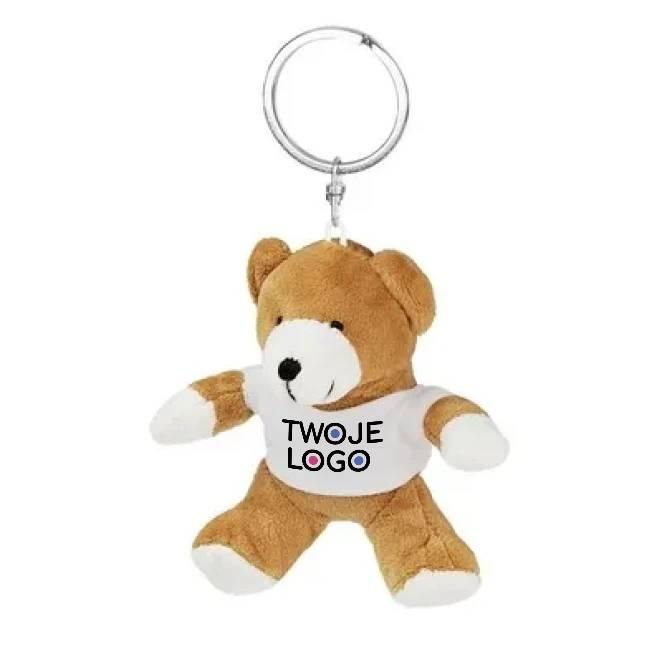 Brelok "miś" w miodowym kolorze z białą koszulką pod nadruk, nieoznakowana koszulka z bawełny jest pakowana oddzielnie, produkt wykonany z pluszu