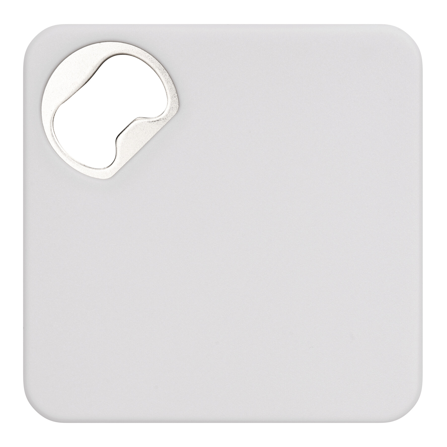 Podkładka pod szklankę TOGETHER wyposażona w otwieracz do butelek, antypoślizgową powłokę na spodzie, z dużą powierzchnią przeznaczoną na nadruk.