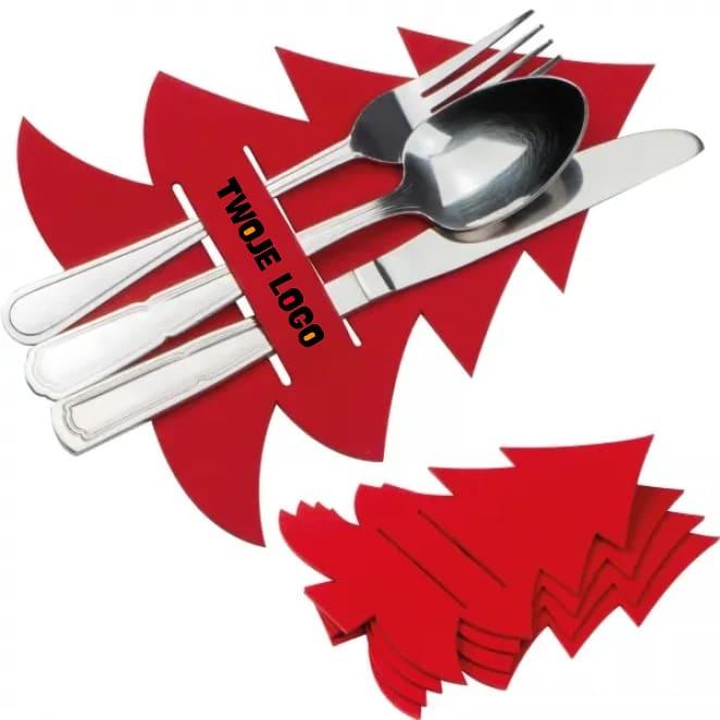 Świąteczne podkładki do sztućców w kształcie choinki, wykonane z czerwonego filcu. Podkładki pakowane po 4szt.