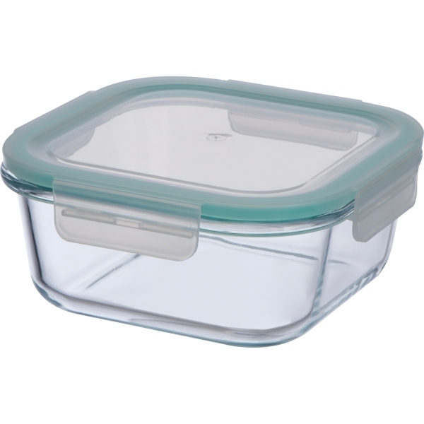 Pojemnik na żywność, wykonany ze szkła ze szczelnie zamykaną na zatrzaski pokrywką. Pojemnik nadaje się do podgrzewania w mikrofali i przechowywania w zamrażarce.