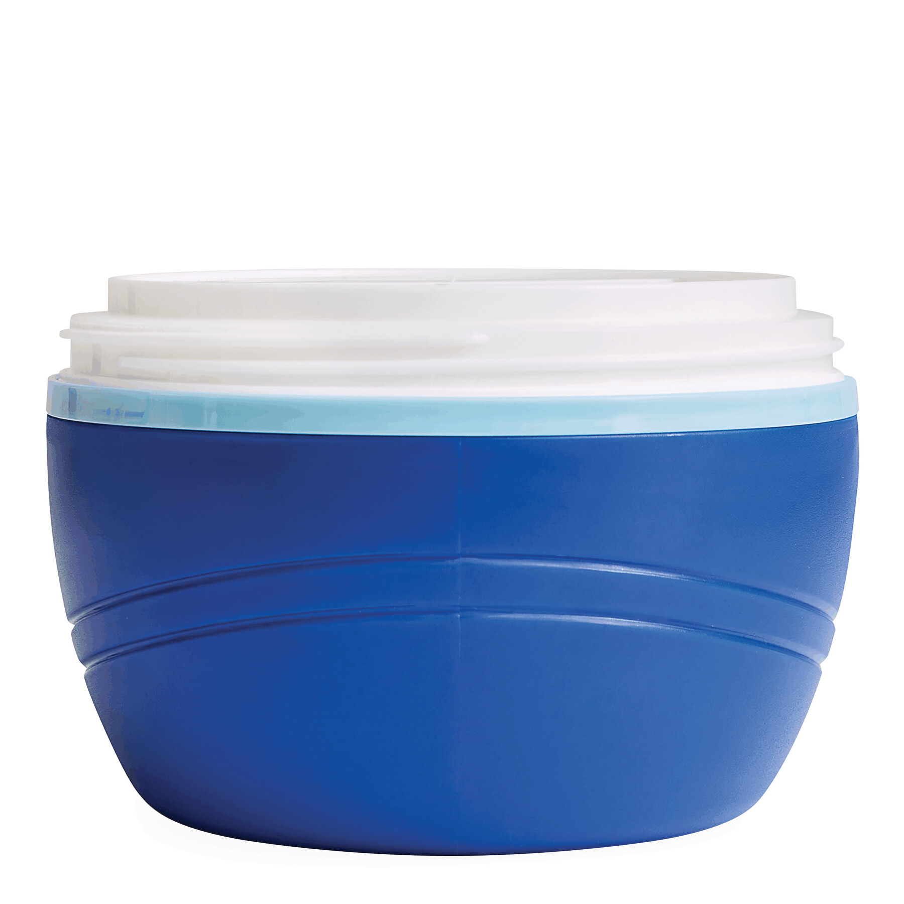 Pojemnik Termiczny JOKO. Wewnętrzna wyjmowana wkładka (nadaje się do kuchenki mikrofalowej) z 2 przegrodami, przykręcana pokrywa z wbudowanym uchwytem i schowkiem na składany widelec-łyżkę. Utrzymuje jedzenie zimne lub gorące do 4 godzin, poj. 450 ml.