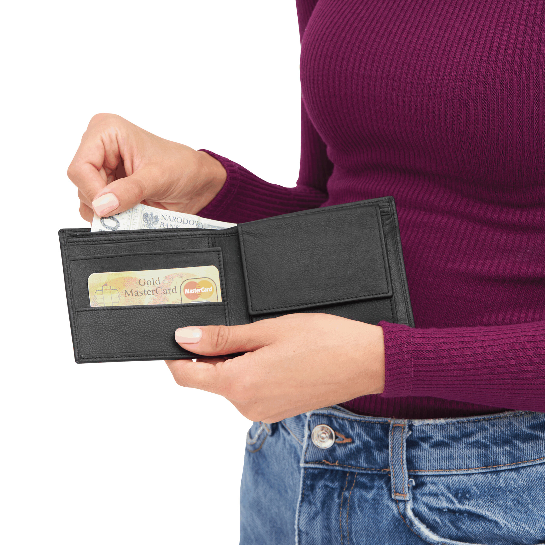 Portfel PALERMO z naturalnej skóry, z kieszeniami na karty i kieszonką na monety z zatrzaskiem.