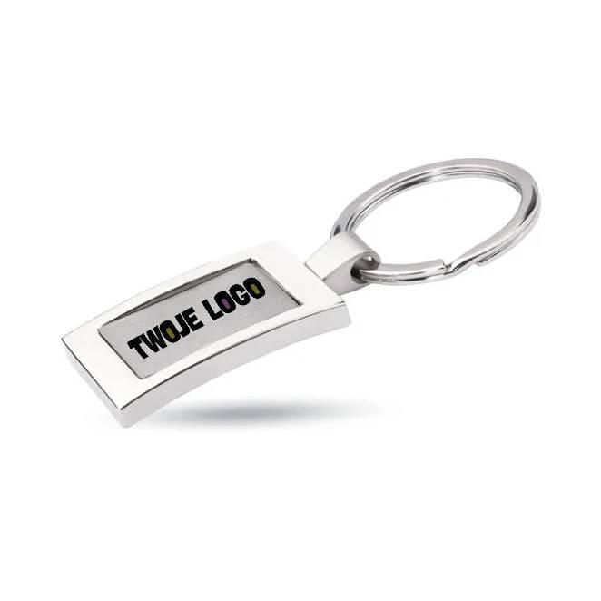 Prostokątny brelok ze stopu cynku. Indywidualnie pakowany w ozdobne pudełko.