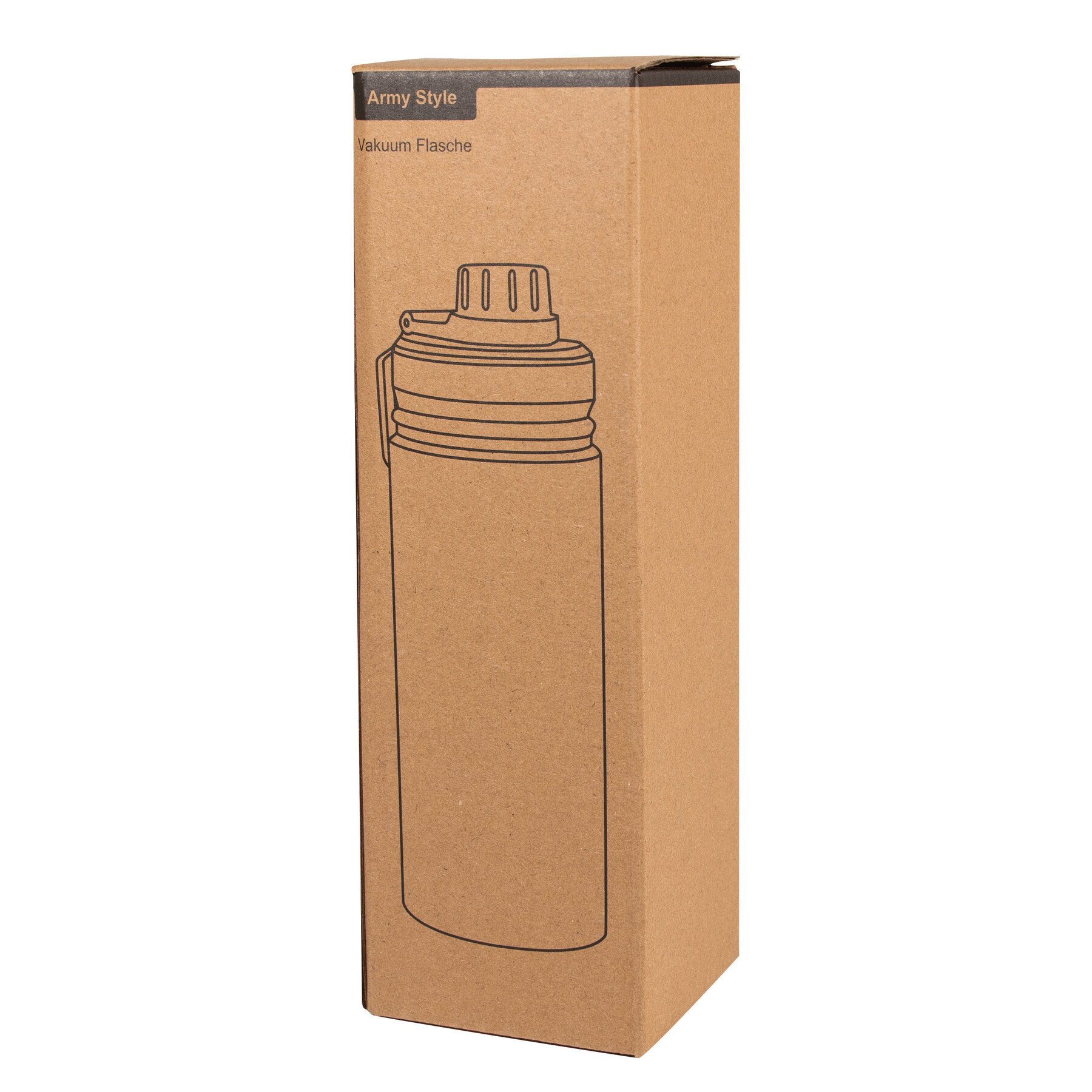 Próżniowa butelka do picia ARMY STYLE, dwuścienna: wewnątrz i na zewnątrz wykonana ze stali nierdzewnej, czarna, szczelna zakrętka, pojemność ok. 600 ml, utrzymuje ciepło napoju przez ok. 8 godzin i zimno do 12 godzin.