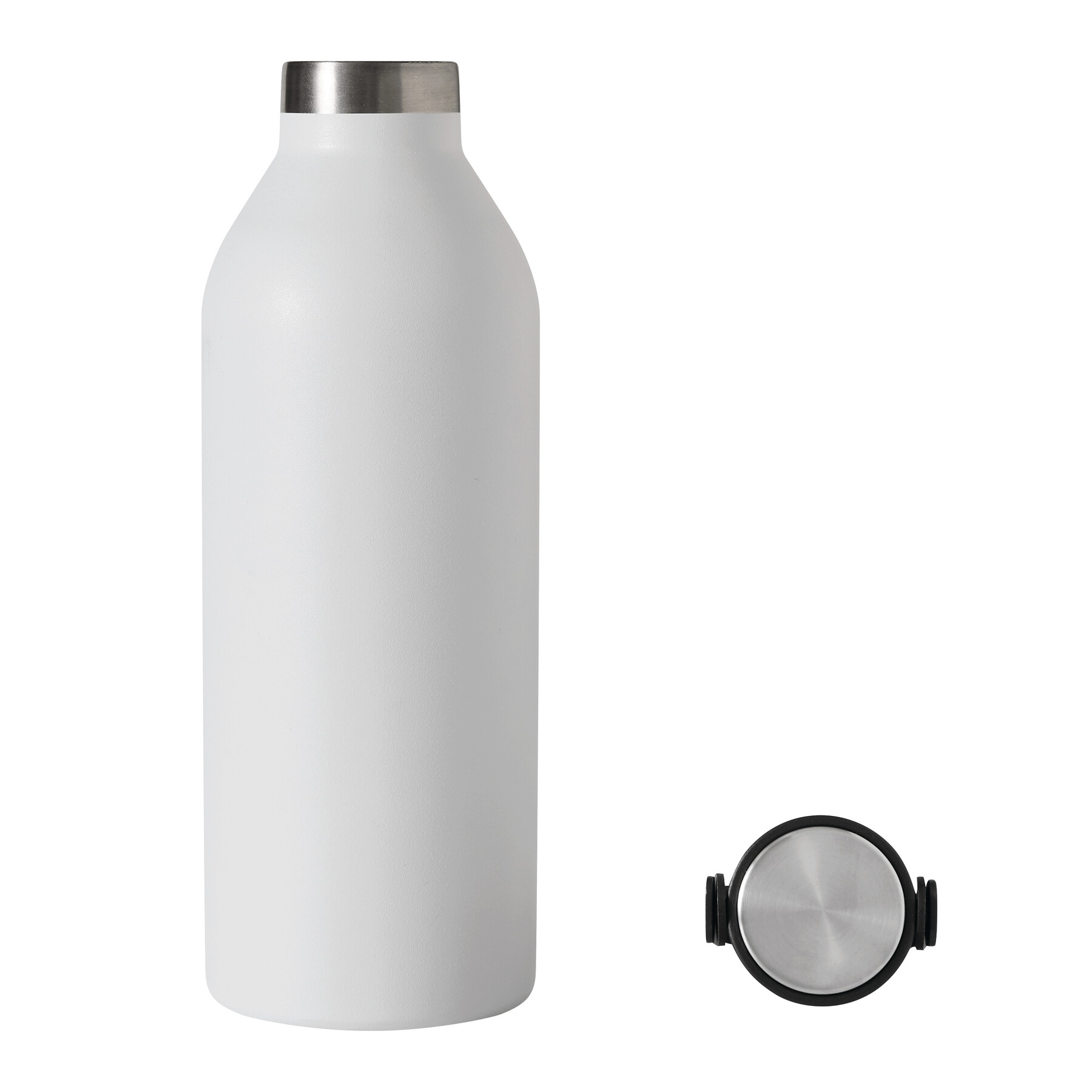 Próżniowa butelka termiczna STEEL LOOP, z podwójną izolacją: wewnątrz i na zewnątrz wykonana jest ze stali nierdzewnej. Posiada matową powłokę proszkową. Ma plastikowa zakrętkę, której górna powierzchnia wykonana ze stali nierdzewnej oraz silikonową rączkę do przenoszenia. Pojemność butelki to ok. 500 ml. Utrzymuje ciepło przez ok. 8 godzin, a zimno nawet do 12.