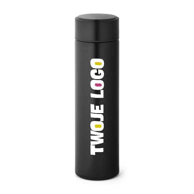 Butelka ze stali nierdzewnej z pokrywką z cyfrowym termometrem. Podwójnie izolowany próżniowo korpus o pojemności do 470 mL. W komplecie z zaparzaczem do herbaty. Utrzymuje ciepło napojów przez 8 godzin i zimno przez 24 godziny. Dostarczany w pudełku. ø65 x 229 mm